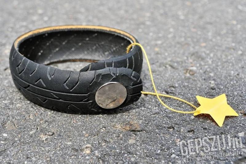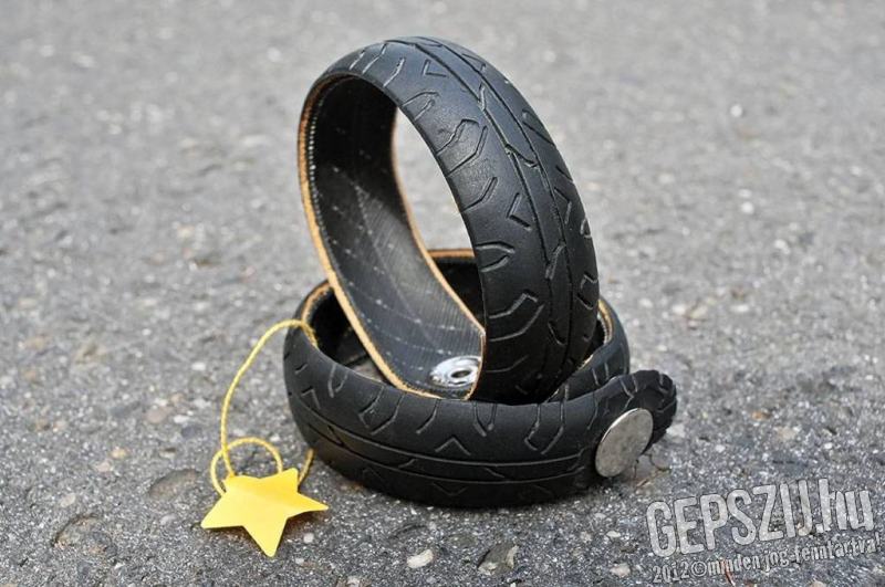 Mutatós mintázatú országúti karkötő Michelin gumiból.