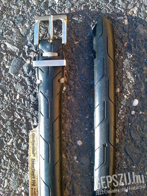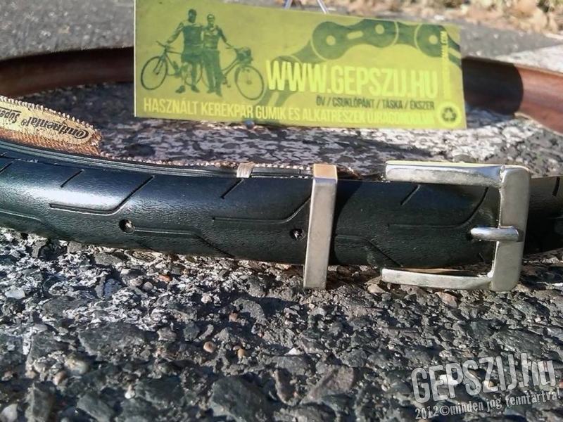 Akár egy elegáns ruhához is felvehető szolíd fekete öv. 23-as Continental SuperSport országúti gumi, acélcsat és ezüst színű varrás. Mindkét oldalán ott a Conti márkajelzés. 4000Ft