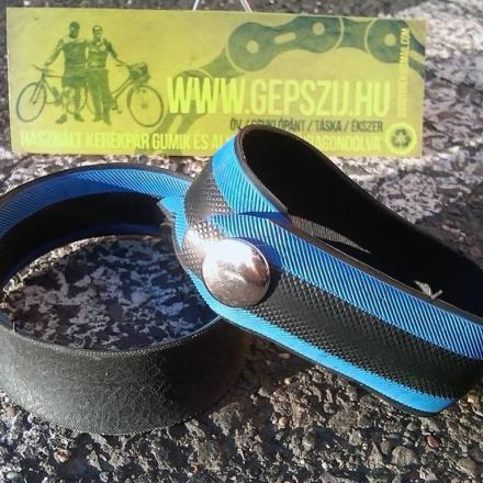 Pihekönnyű országúti gumi kék színben a Scwalbe-től. Ezüstszínű patenttal. Kifordítva is hordható, ilyenkor a gumi belső apró dombornyomott oldala látszik és homorú alakot vesz fel. 1800Ft