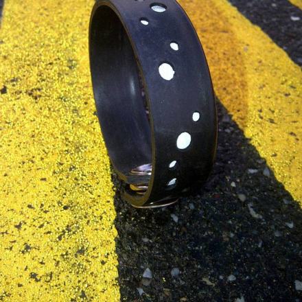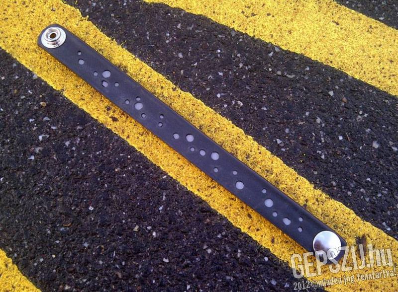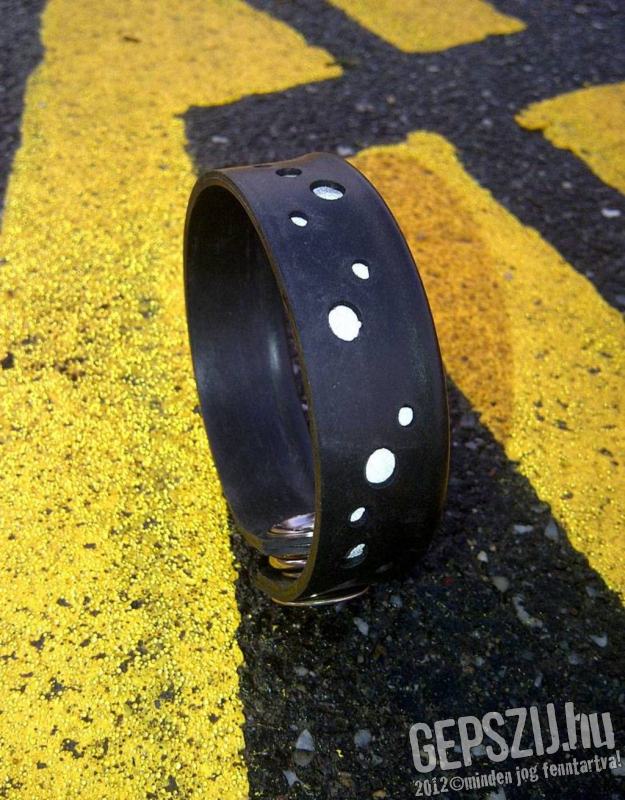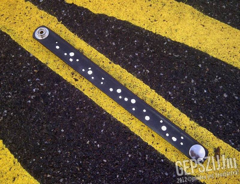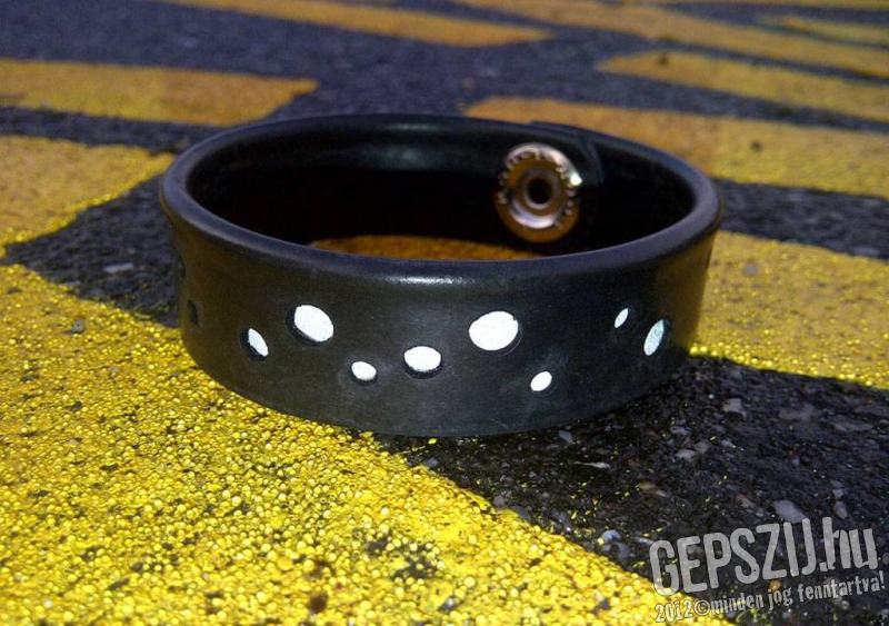 Keskeny uniszex karkötő fényvisszaverő pöttyökkel. Az alapanyaga kerékpár gumibelső, ebbe van beleszerkesztve egy fényreflektív anyag. A pöttyök a vízben felfelé áramló buborékokhoz hasonlóak, innen a Glu-Glu elnevezés.