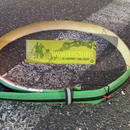 Egy könnyű kevlár alapú öv. Vittoria PRO-TEAM országúti gumiból készült. A csat Fekete és piros DT küllőkből hajlítva. Bújtató fényvisszaverő gumiperemből. 5600Ft