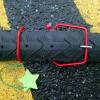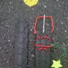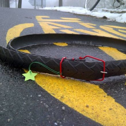 Scwalbe Silento a csendes kilóméterfaló. Egyedi pikkelyes mintázata sokunknak hasznára vált az utakon. Egyesek slick-re koptatva és 5bar-ra fujva használják, mert így igen jó gördülési tulajdonságokkal bír. Egy belső vörös defektálló réteggel van kombinálva. Az övnél épp erre igyekeztem öszpontosítani; vörös küllő-csatot és varrást kapott, mely szinte izzik a gumin :)