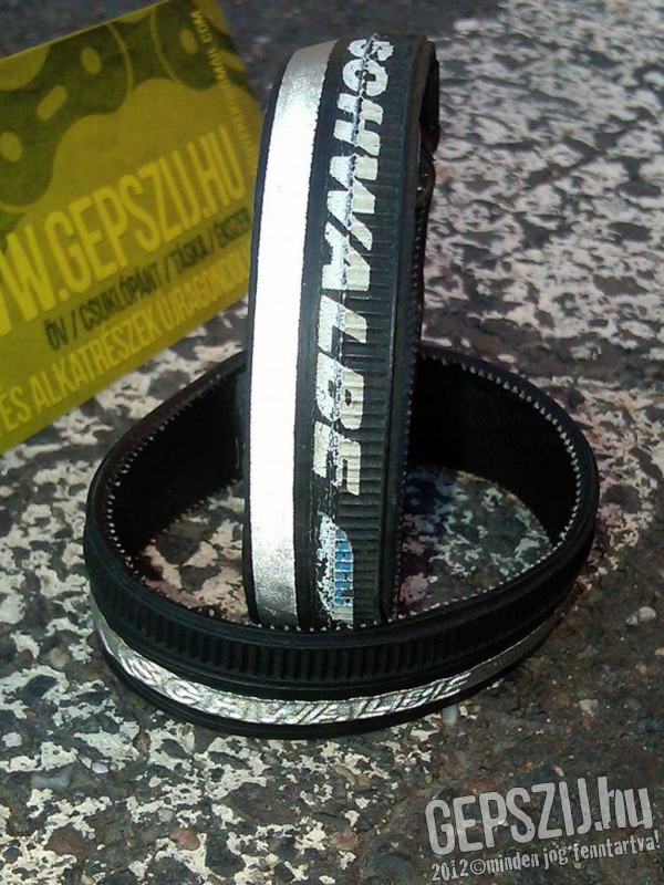 Ez a fényvisszaverős Scwalbe karkötő kiváló választás éjszakai csavargásokra. Indexelésnél kitűnően látható. Bordázott, 'dinamó-barát' sormintával. 1500Ft