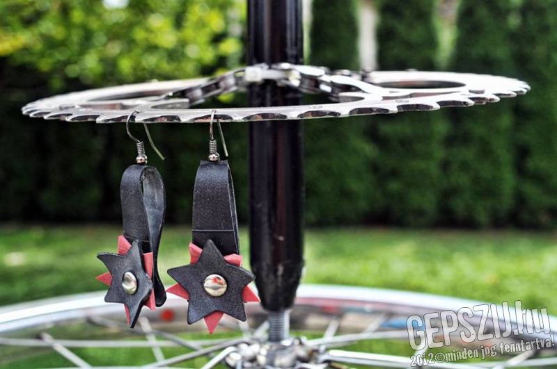 Fekete trekking és piros BMX gumibelsőből készült.