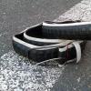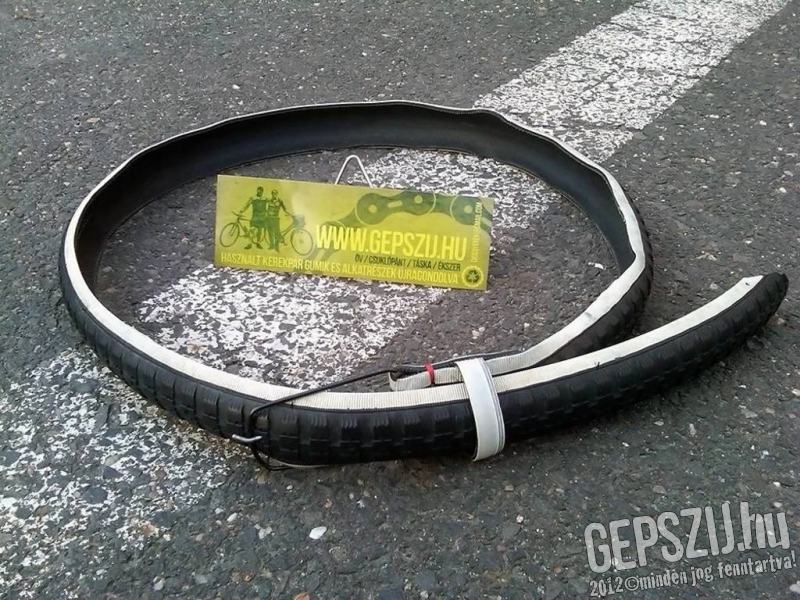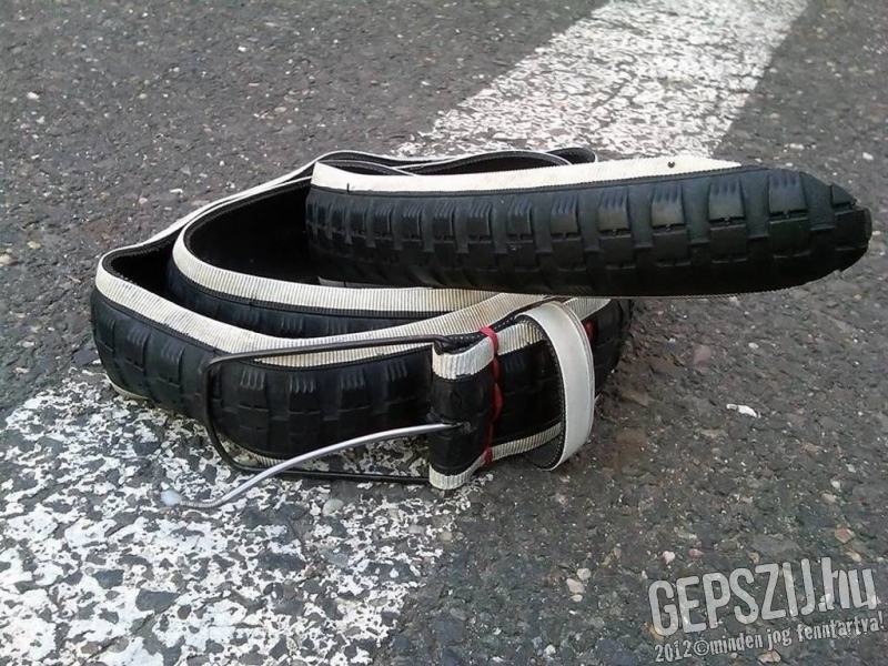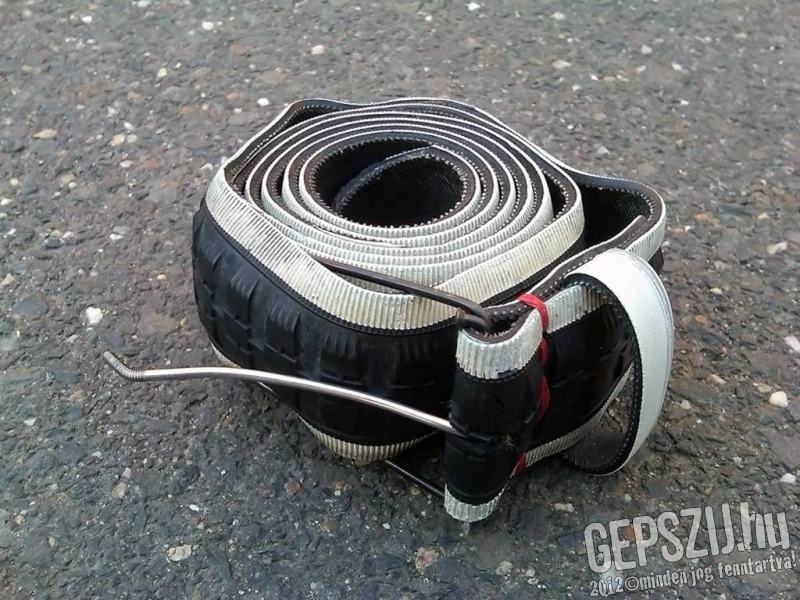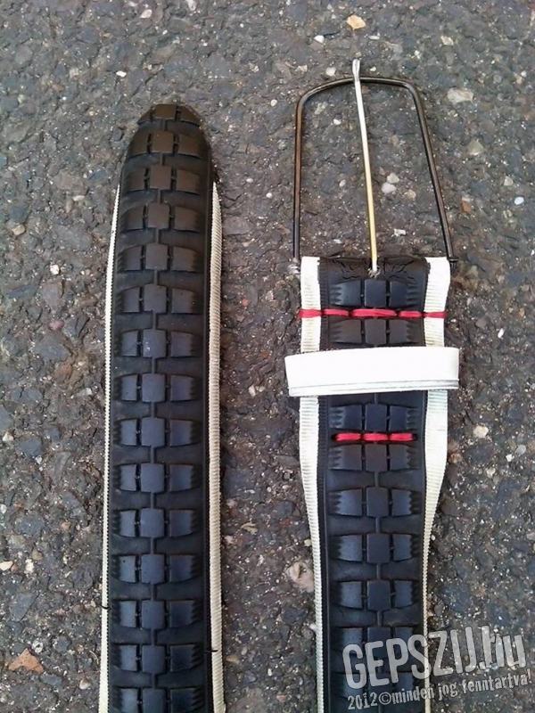 Oldschool Cruiser gumi. Széles és egyben masszív megjelenés. Fekete hosszított csat ezüst nyelvvel - természetesen DT küllőkből. Piros varrással, fehér gumiperem bújtatóval. 4200Ft